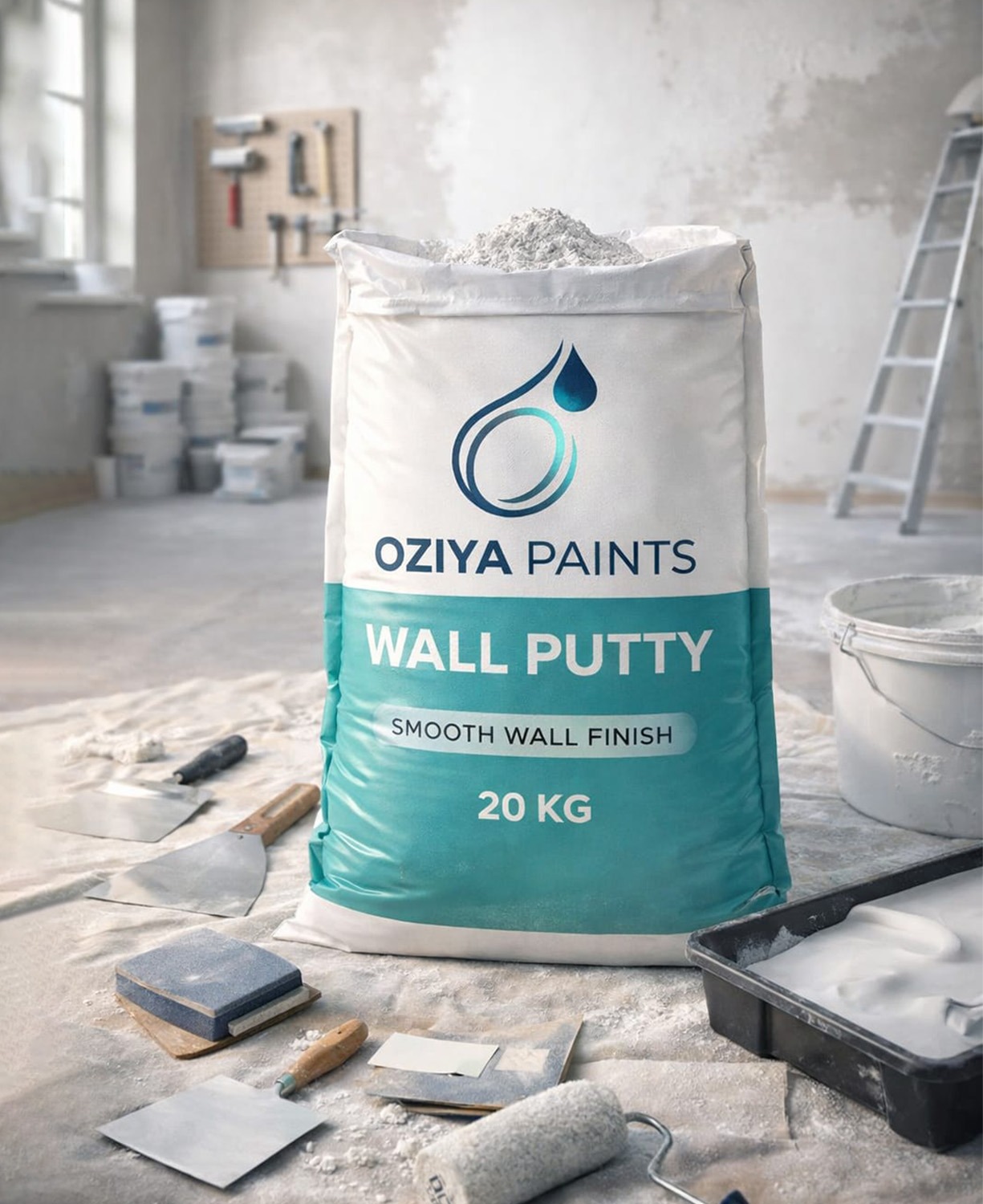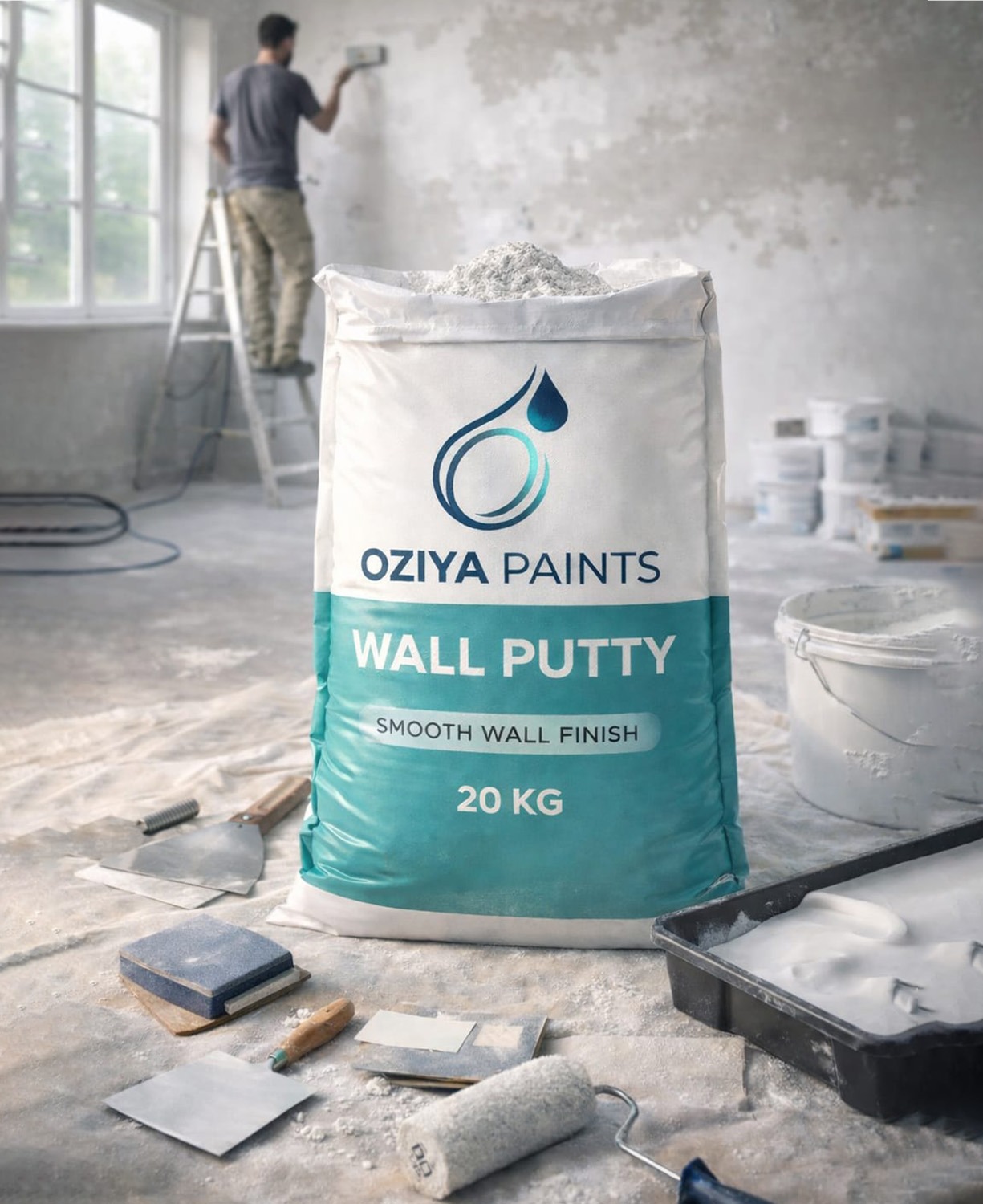 Oziya Paints Wall Putty 20 Kg un contractors aur homeowners ke liye perfect hai jo chhote areas ko prepare karna chahte hain. Yeh cement-based formula diwaron ko even karta hai, unhe saaf aur smooth banata hai taaki paint uniform lage.